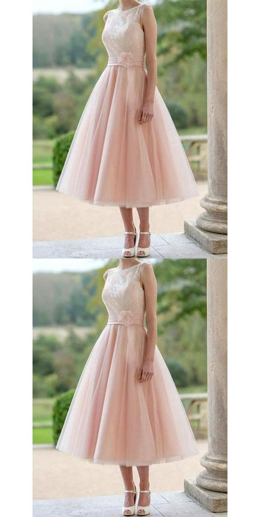 Elegant Blush Pink Round Neck Sleeveless Tulle Prom Dresses Evening Dresses cg8031