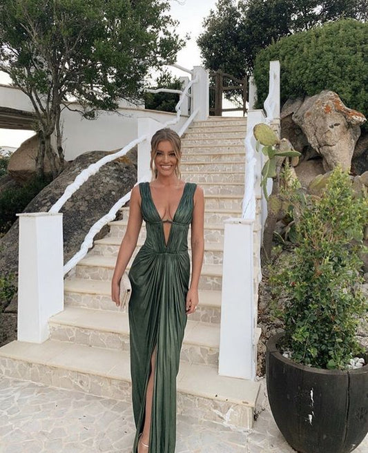 Sexy Sheath V neckline Green Long Prom Dresses P1768