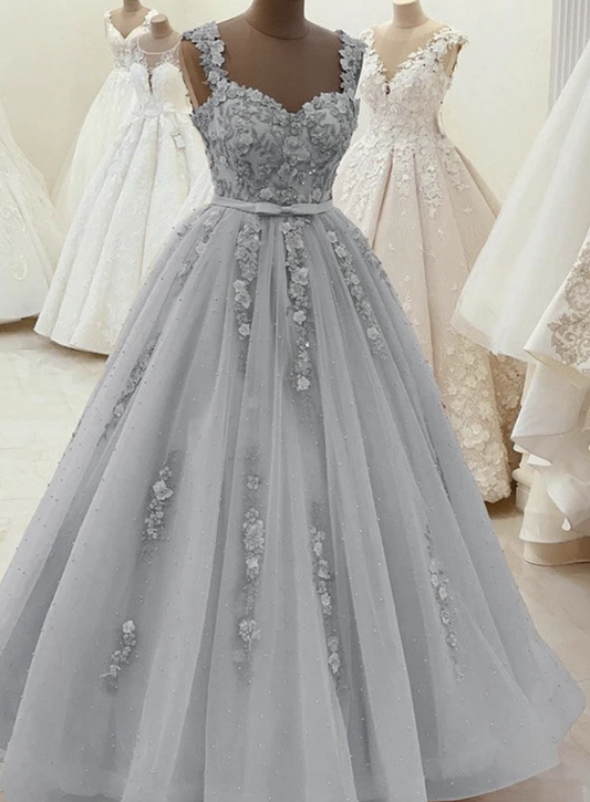 Gray sweetheart tulle long prom dress gray evening dress cg11060