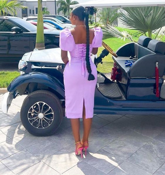 Ruffled Puff Sleeve Dress Solid Square Collar Women's Summer Dress , Homecoming Party Dress fg2740