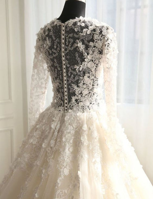 White organza lace long sleeves see-through A-line long dresses,wedding dresses Prom Dresses cg11748