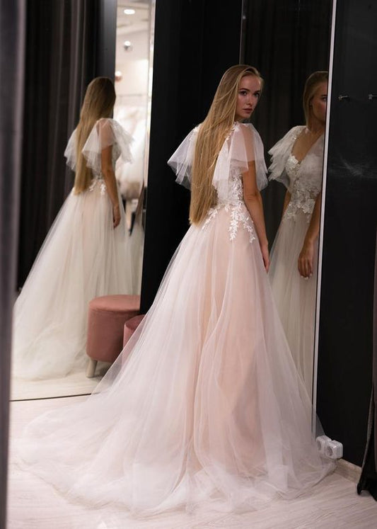 Sexy Deep V Neck Tulle Dresses Prom Dresses with Appliques Beaded cg12539