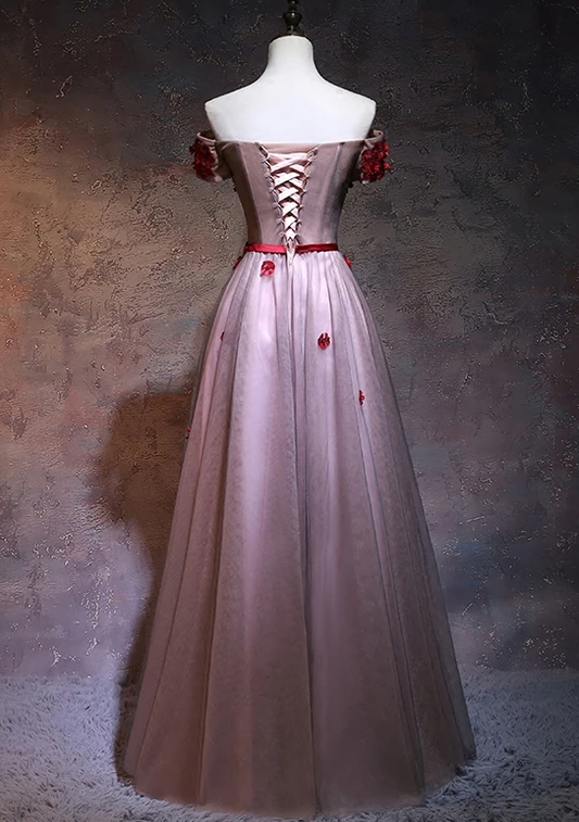 Unique Pink Tulle Off Shoulder Party Dress With Lace Applique Cute Prom Dress cg12693