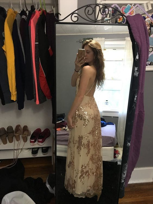 A-line V Neck Long Prom Dress, Open Back Prom Dress cg12745