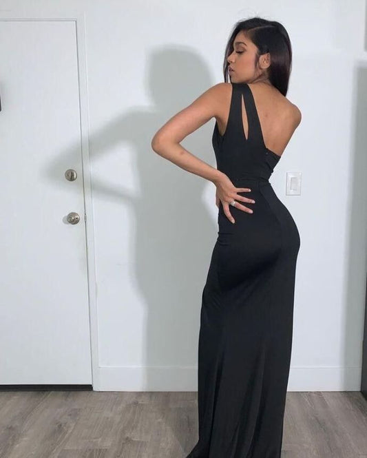 One Shoulder Side Slit Mermaid Evening Dress, Black Long Dress Prom Gown cg13183