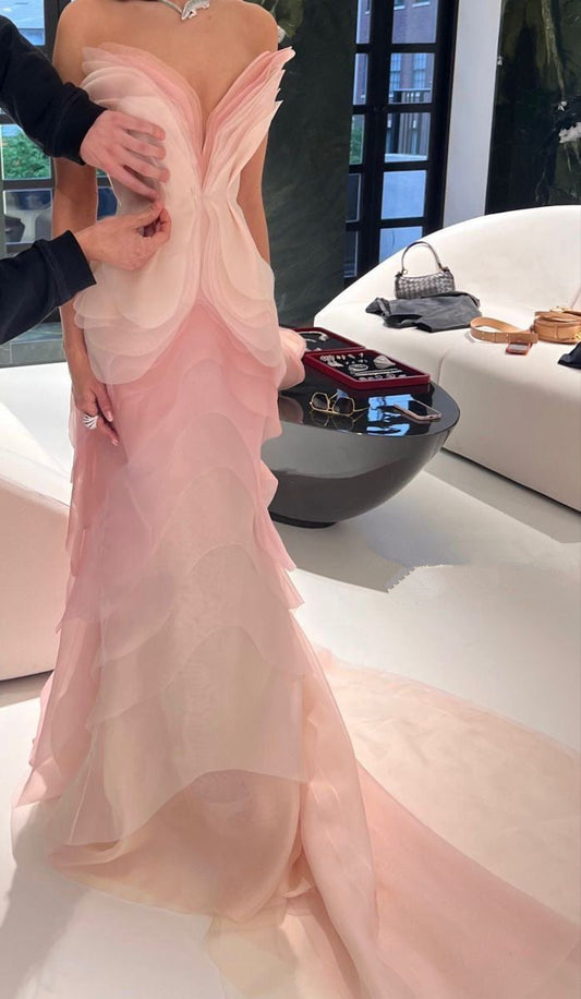 Strapless Sheath Midi Length Ruffle Prom Dress Sexy Evening Dress fg7107