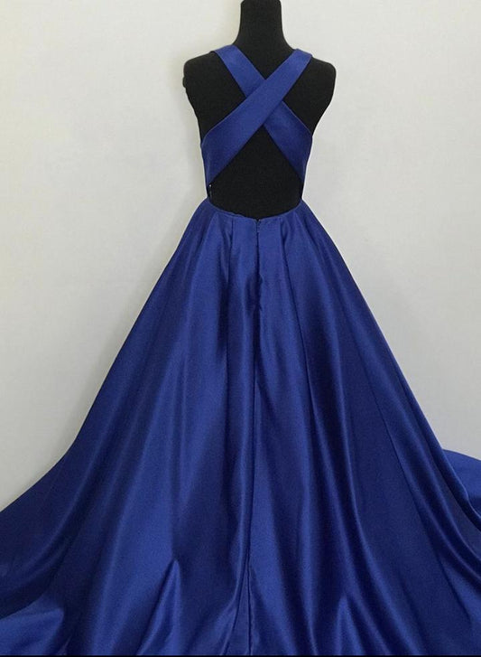A-line royal blue formal evening dress with pluning neckline and 3 bands Prom Dresses cg14414