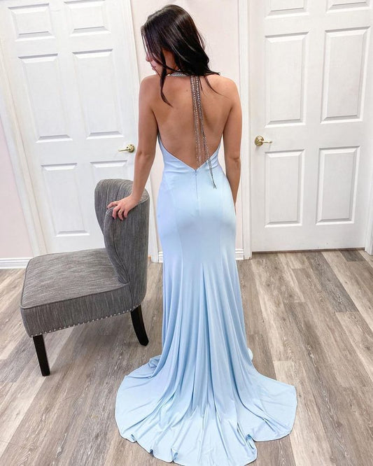 Halter Neckline Sleeveless Long Prom Dress cg15167