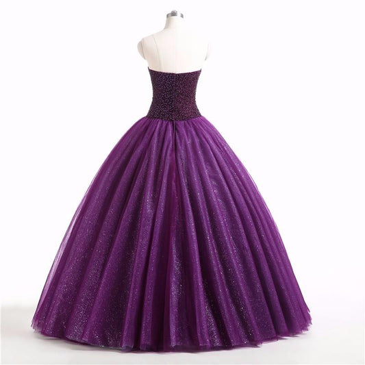 Gorgeous Purple Beaded Tulle Ball Gown Sweet 16 Dress, Purple Quinceanera Dress Prom Dress cg15680