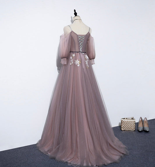Pink Lace Tulle Appliques Long Prom Gown cg16854