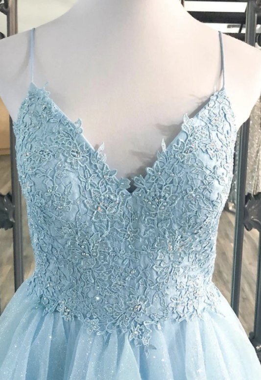 princess high low blue tired long prom dress birthday dress, sparkle blue formal gown cg17394