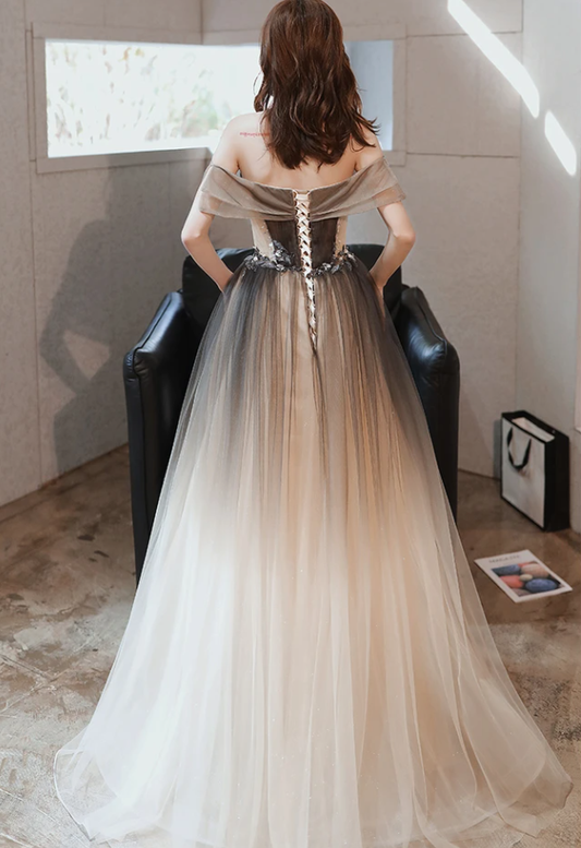Beautiful Gradient Off Shoulder Tulle Long Party Dress, Sweetheart Prom Dress, Formal Dress cg17657