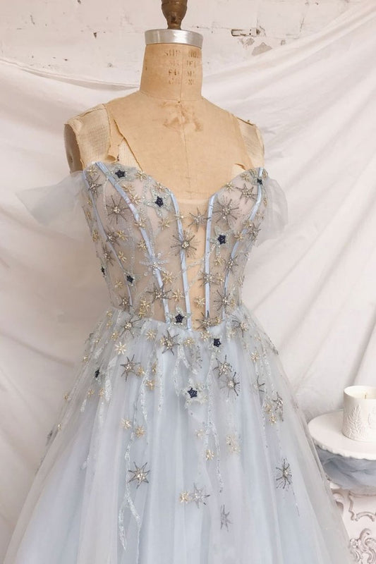 BLUE SWEETHEART TULLE LONG PROM DRESS BLUE TULLE FORMAL DRESS cg17979