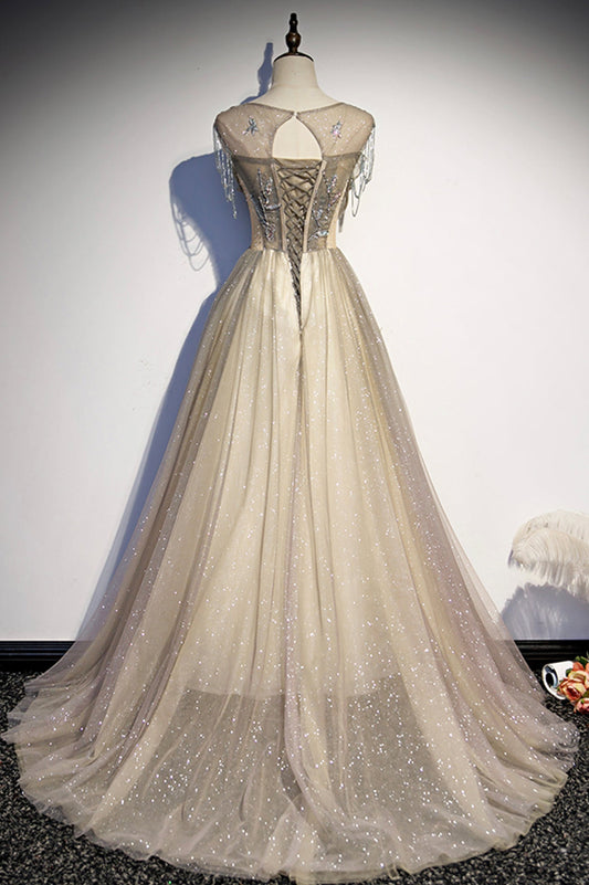 Champagne A-line Long Formal Dress Long Prom Dress cg18181
