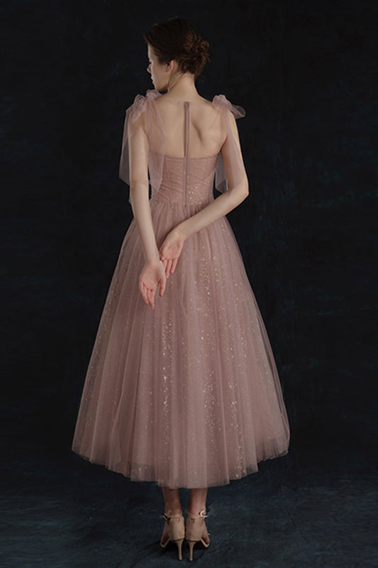 PINK A LINE PROM DRESS PINK TULLE EVENING DRESS cg18962