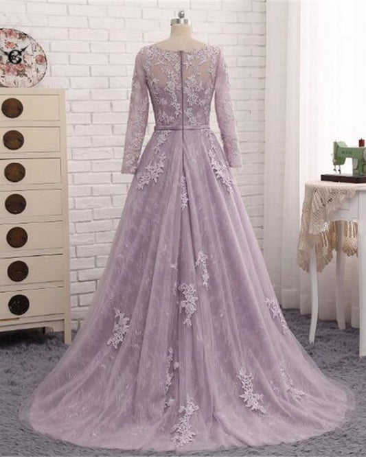 Light Purple Evening Dress Formal Party Gown,Round Collar Lace Prom Dress cg19113