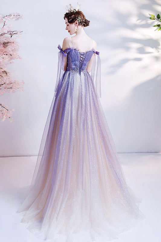 PURPLE TULLE LONG A LINE PROM DRESS EVENING DRESS cg20720