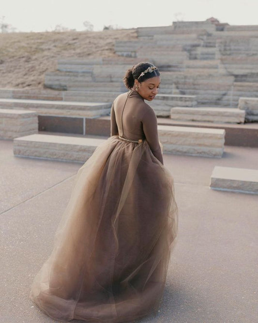 BURGUNDY TULLE LONG A LINE PROM DRESS EVENING DRESS cg21059