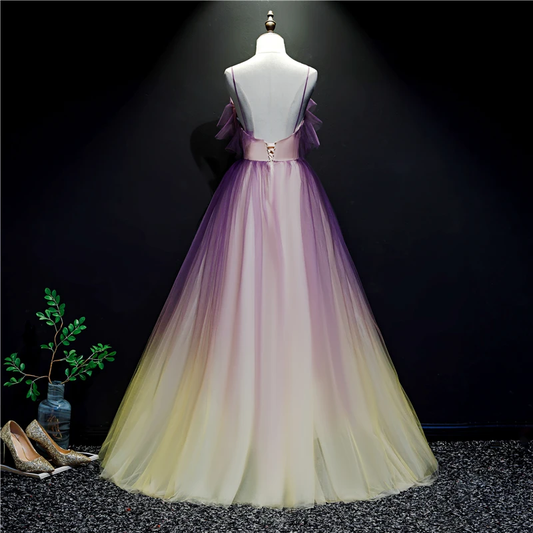 Purple And Yellow Gradient V-Neckline Straps Tulle Evening Gown, Long Prom Dress Party Dress cg22030
