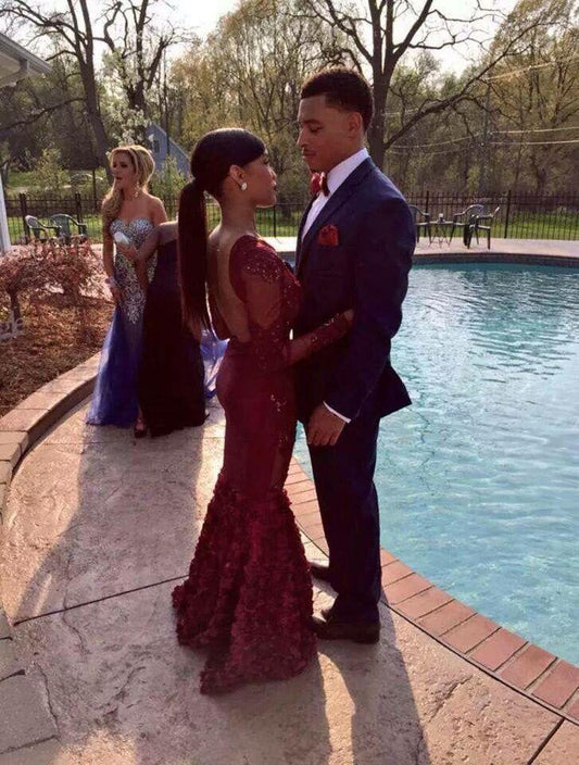 Lace Mermaid V Neck Long Sleeves Prom Dresses cg23657