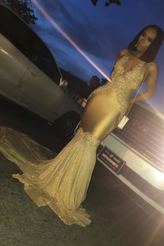 Super Shiny Halter Sleeveless Mermaid Long Prom Gown with Sweep Train cg24854