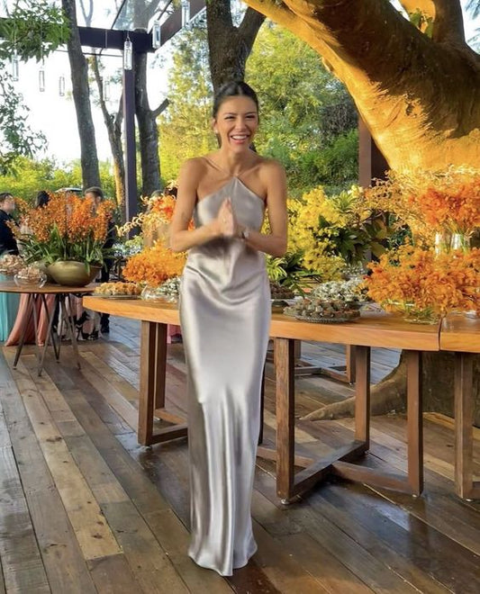 Satin evening dress for women sleeveless sexy party dress cg25130