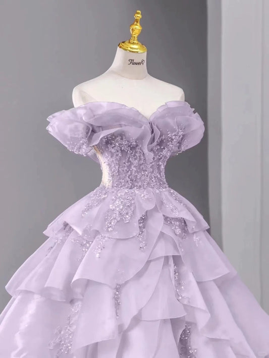 Lavender Tulle Ball Gown Sweetheart Quinceanera Dress Evening Dress cg25447