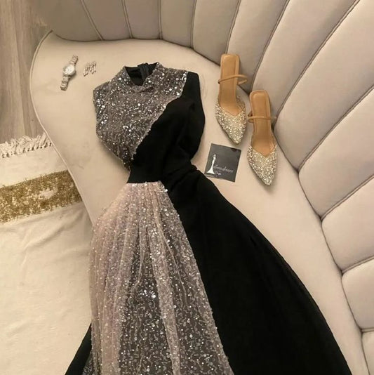 Sexy Silver Gray Sequin Prom Party Dresses Unique Evening Dress Long Princess Dress cg26043