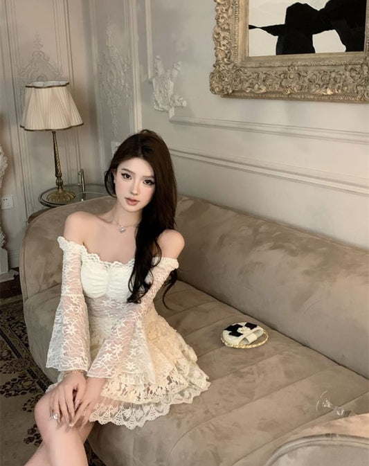 Ivory Lace Cocktail Dresses Homecoming Dress Short Prom Dress Party Dress cg26034