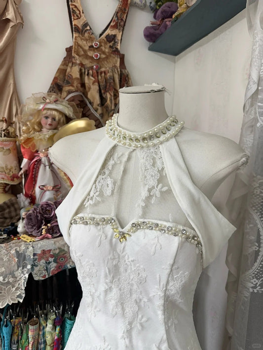 Vintage Halter Long Prom Party Dresses Unique Evening Dress cg26076