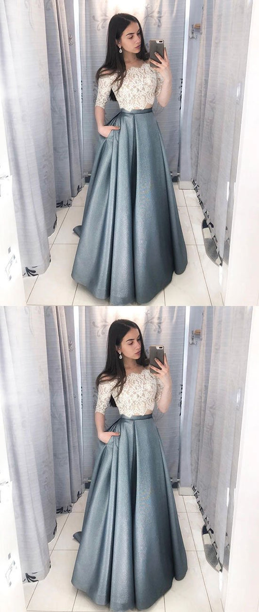 Unique lace two pieces long prom dress, lace evening dress cg466
