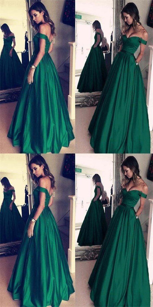 Green Off The Shoulder Prom Dress, Satin Prom Dress, Charming Prom Dress, Elegant Prom Dress cg488