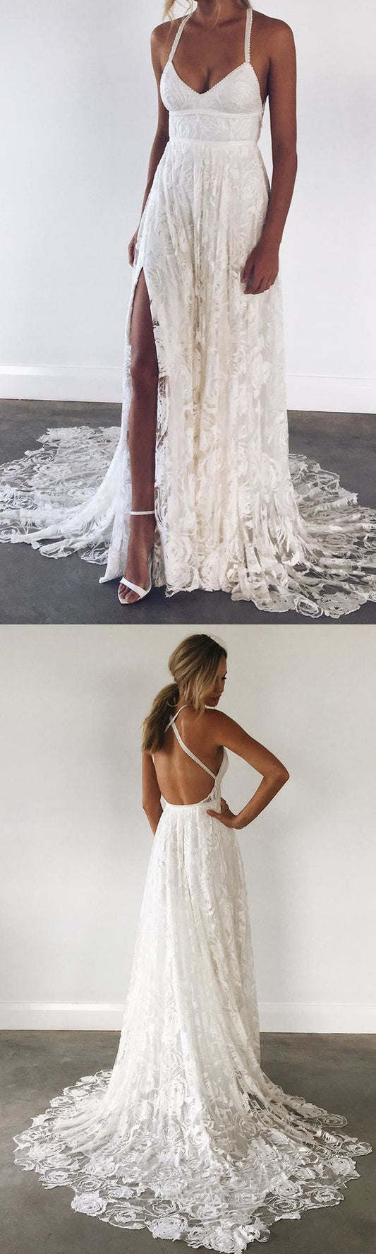 Charming Lace Long A-line Fashion Spaghetti Straps Wedding Dress , prom dresses cg619