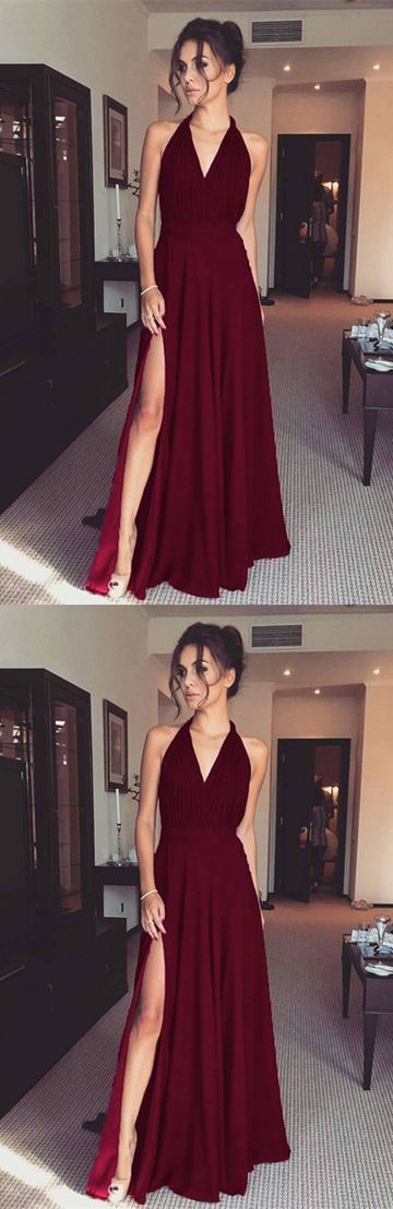 Burgundy Prom Dress, Sleeveless Evening Dress, Sexy Evening Dress, Evening Dress Backless, A-Line Prom Dress cg621