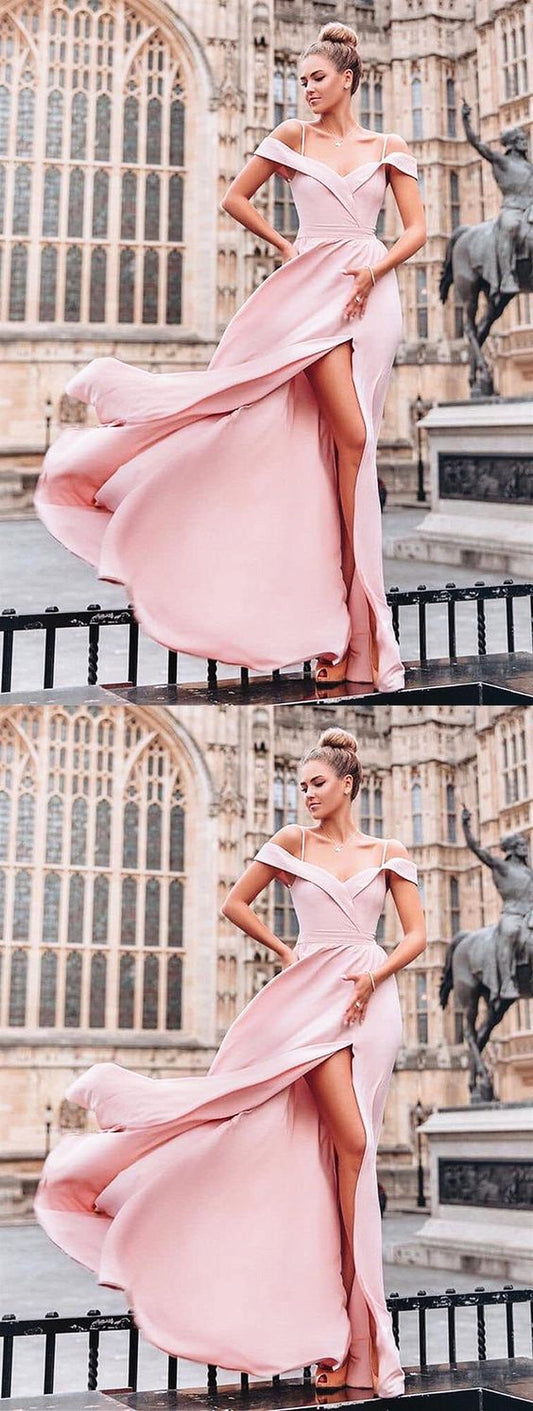 Off the Shoulder Pink Floor Length Prom Dresses Long, Pink Long Off Shoulder Bridesmaid Evening Dresses cg1335