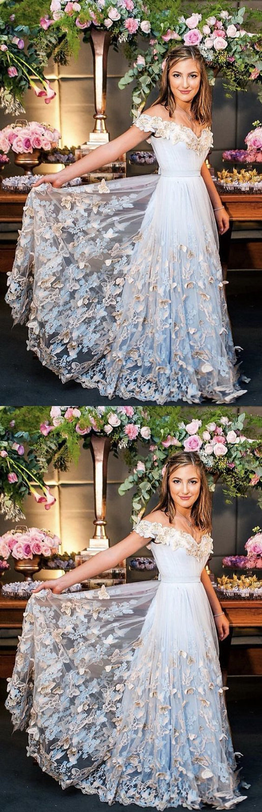Light Blue Tulle Off The Shoulder prom Evening Gowns cg1341