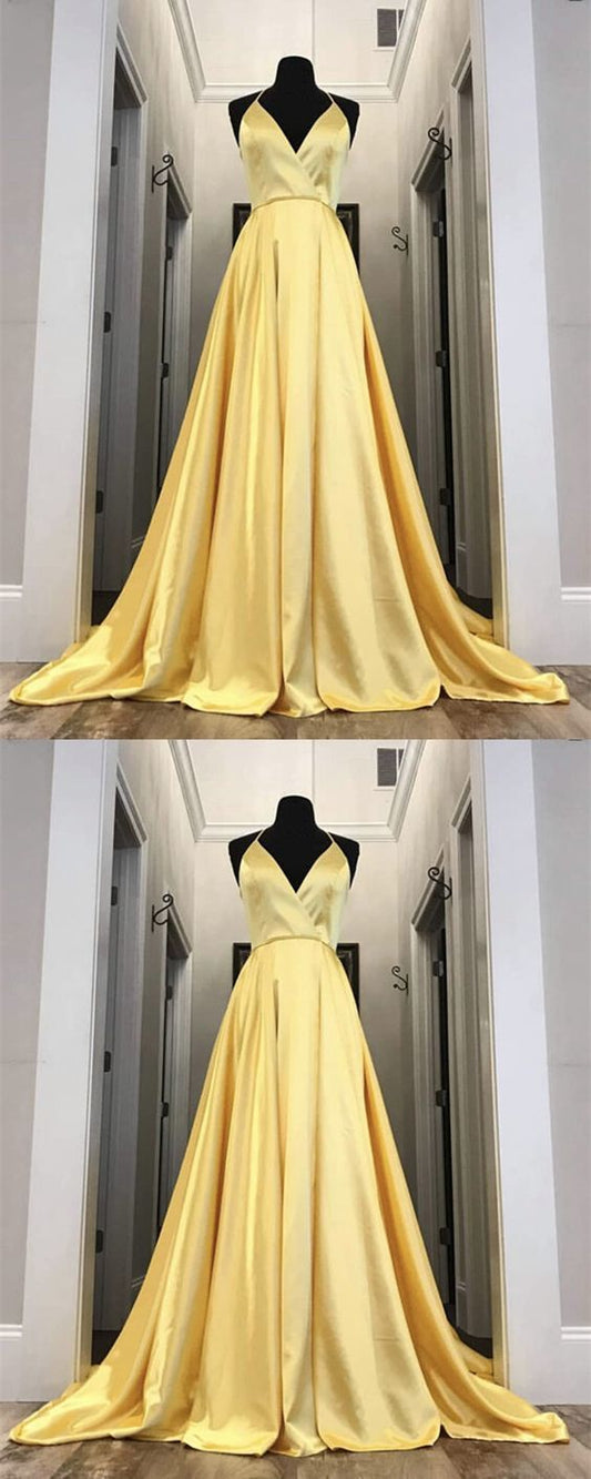 Simple V-neck Sleeveless Backless Prom Dress with Spaghetti Straps cg1370