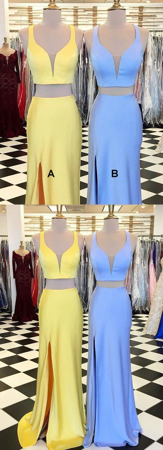 Custom Made Comely Prom Dresses Blue Two Piece Yellow/Blue Mermaid Long Prom Dress With Side Slit cg1392