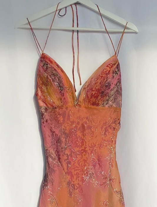 Retro Orange Print Floral A Line Spaghetti Strap Chiffon Homecoming Dress Outfits SH3609