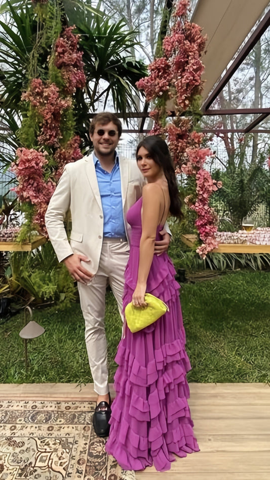 Purple Chiffon Evening Dresses, Senior Prom Dresses, Ruffles Party Dress