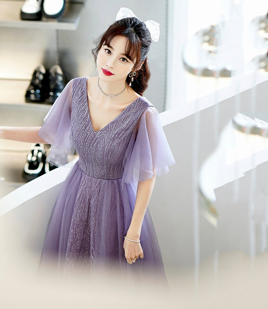 Purple sweetheart neck tulle long prom dress purple formal dress KS4706