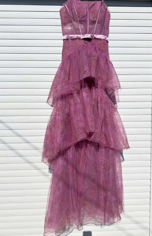 Purple Printed A Line Spaghetti Strap Corset Prom Dress ED01305
