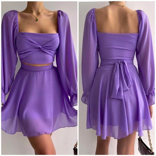 Purple Long Sleeve Short Prom Dress Homecoming Dresses fg870