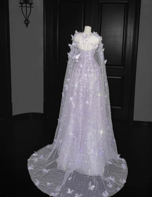 Purple Butterfly A Line Strapless Sequin Tulle Long Prom Dress Party Dress SH3249