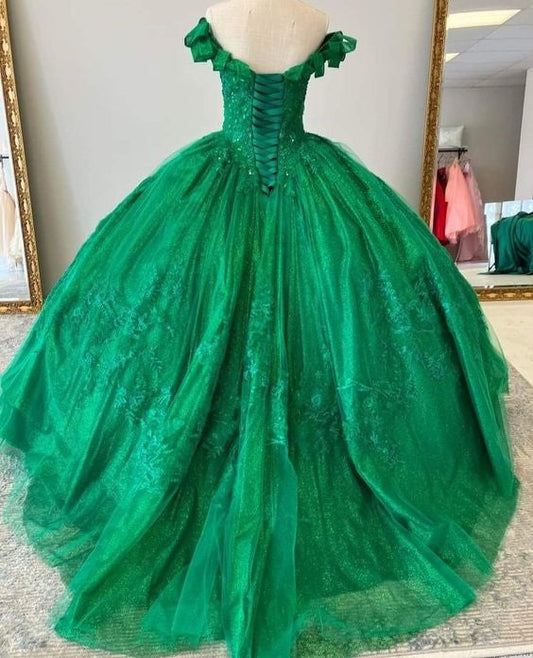 Princess Green Appliques Ball Gown Quinceanera Dress Sweetheart Off Shoulder Party Sweet 15 Party Dress fg4538