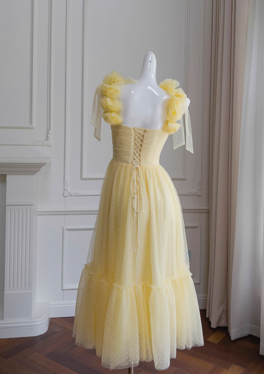 Yellow A-line sweetheart neck tulle short prom dress, yellow homecoming dress ED01156