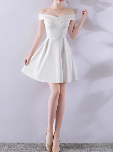 White A-line off-the-shoulder tulle lace short prom dress, white homecoming dress ED01159