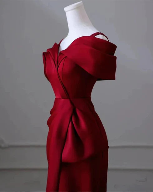 Burgundy Mermaid Off Shoulder Satin Long Prom Dress Dress, Simple Evening Dress ED01422