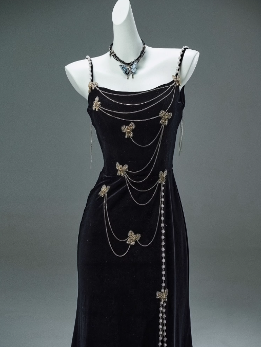 Black Velvet Long Prom Dress Mermaid Sleeveless with Beads ED01459
