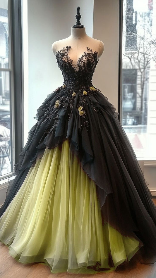 A-Line Sweetheart Neck Beaded Tulle Long Prom Dress for Quinceanera Lace Applique Wedding Dress ED01636